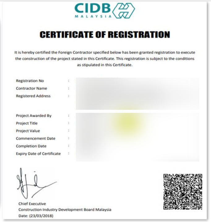 Foreign CIDB Contractor Certificate